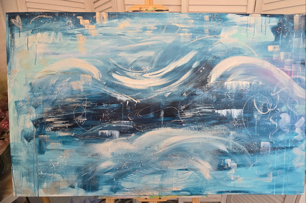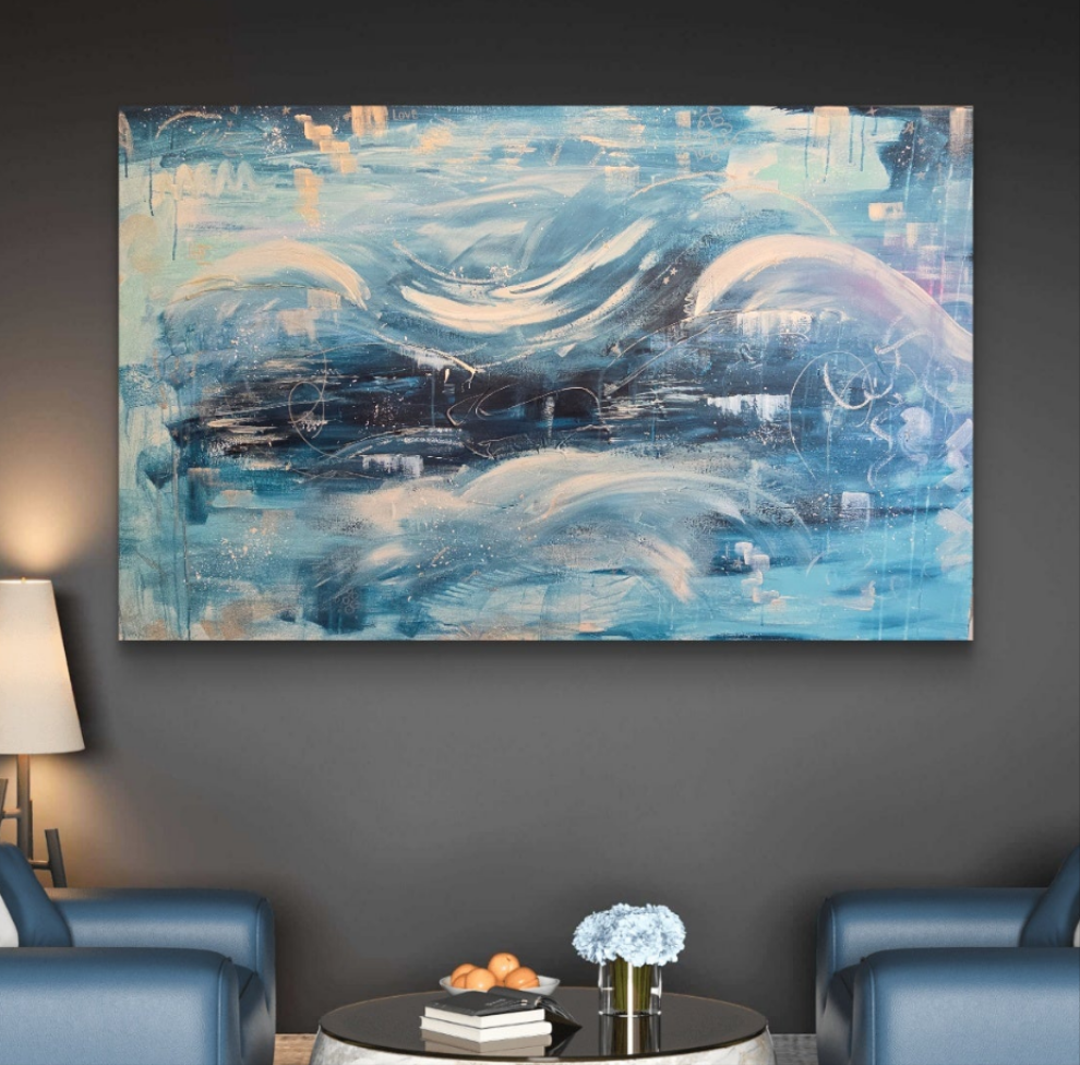 This artwork captures a mood more than a moment: it’s where stillness meets movement, where teal and gold collide in harmony. With its abstract language and rich textures, Blue Floyd embodies a unique blend of serenity and intensity.