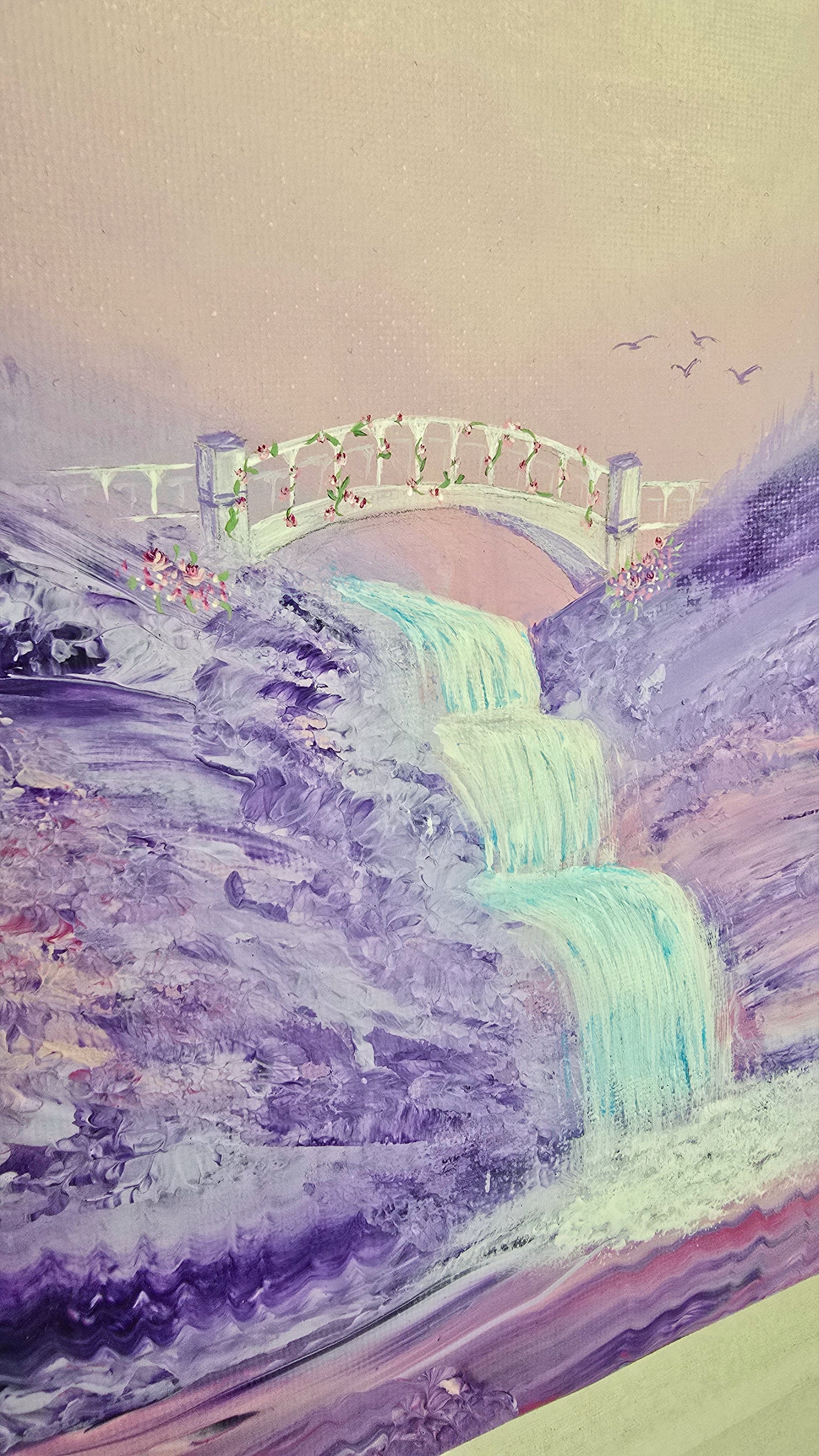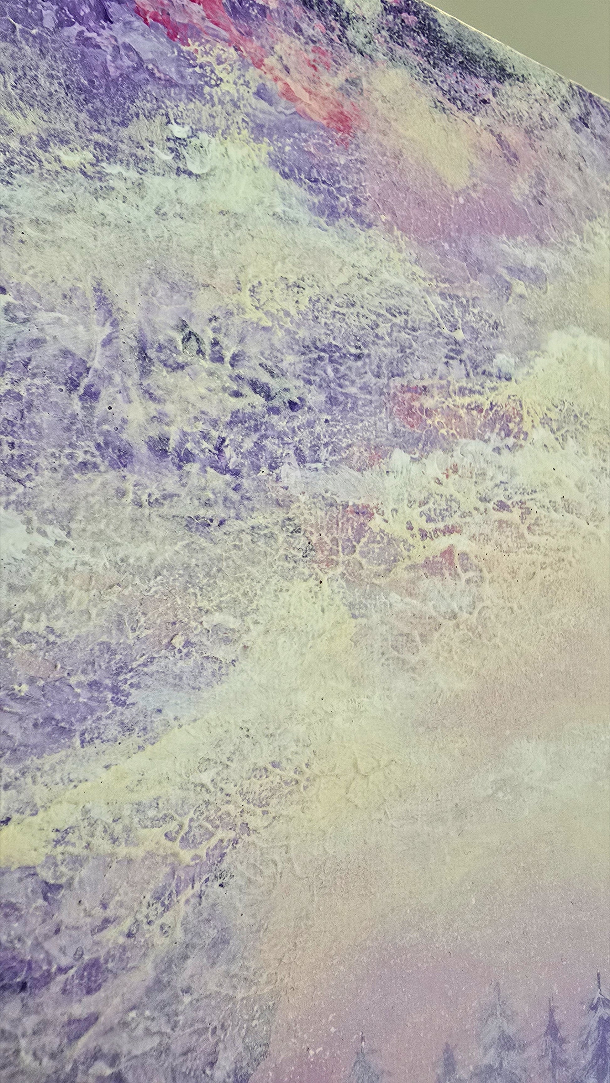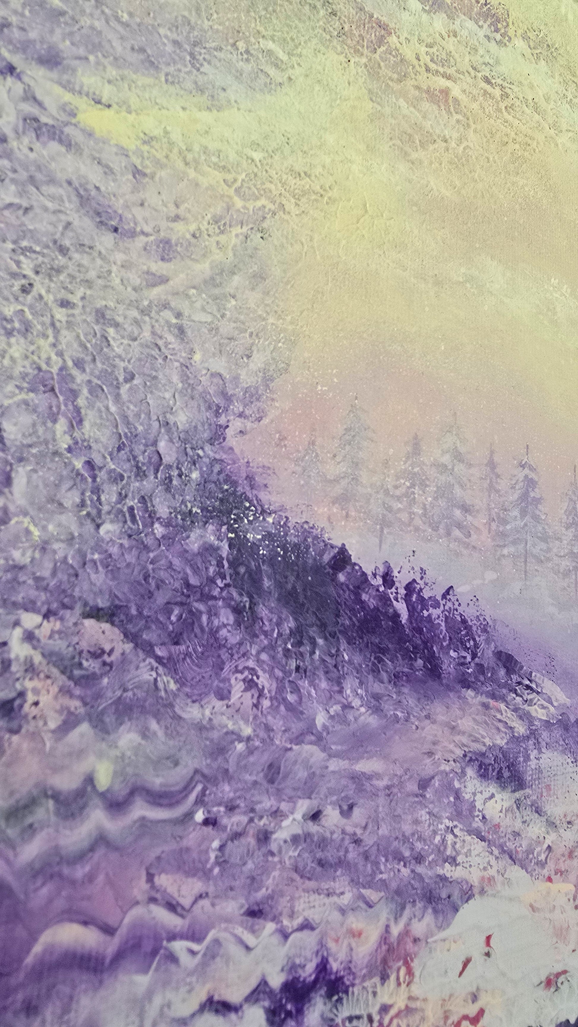 Lilac Spell - The piece explores soft transitions of lilac, purple, soft rose and white, built through translucent layers that create a sense of depth and lightness. Developed through an intuitive process, the brushwork is fluid and layered, evoking an ethereal, contemplative landscape.