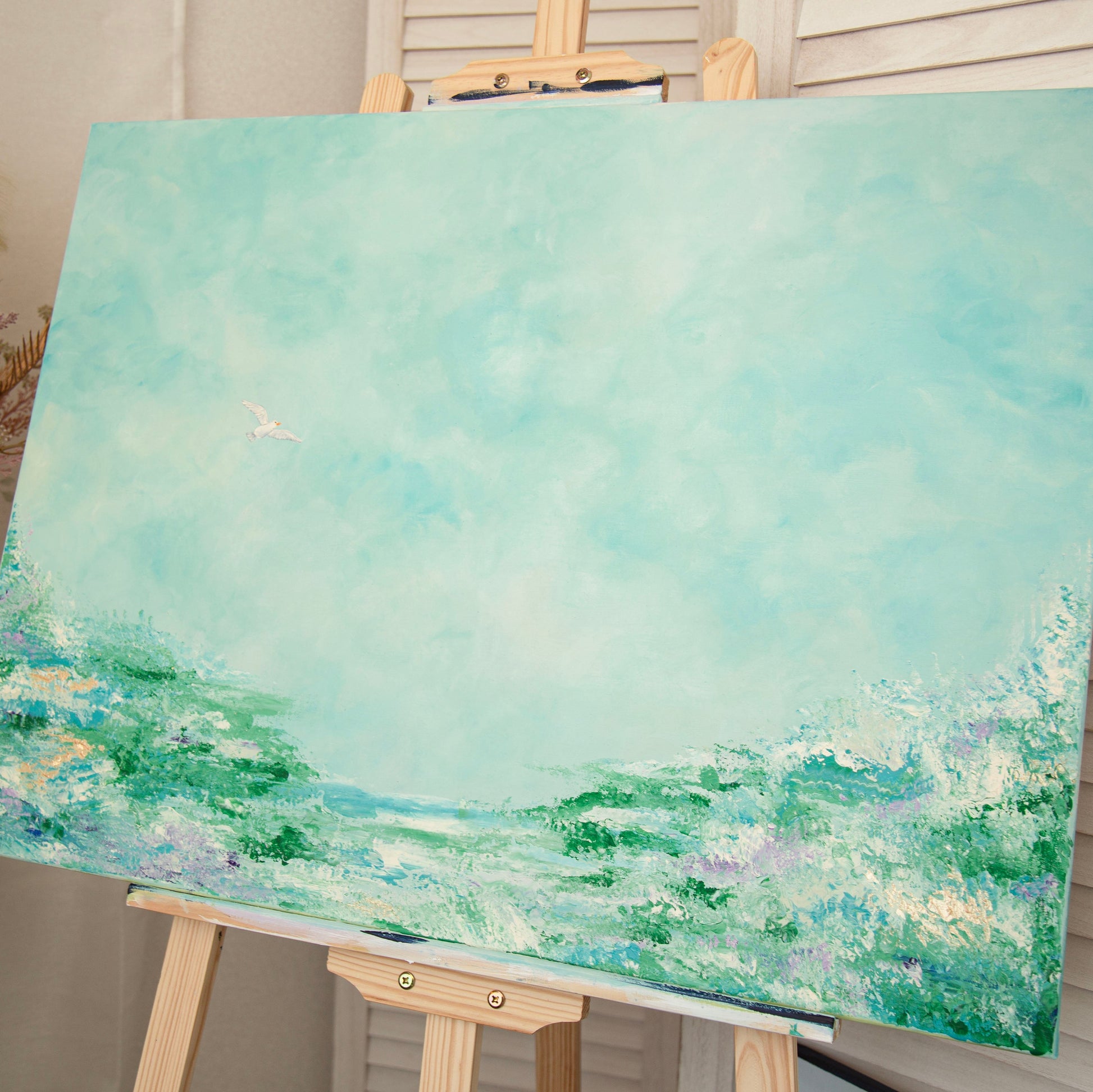 This piece captures the essence of quiet not as absence, but as a full presence. Gentle brushstrokes and a soft, ethereal composition evoke a moment of stillness — like flowers blooming in a field untouched by noise. Every detail invites reflection and a deep listening to what can only be felt, not heard.