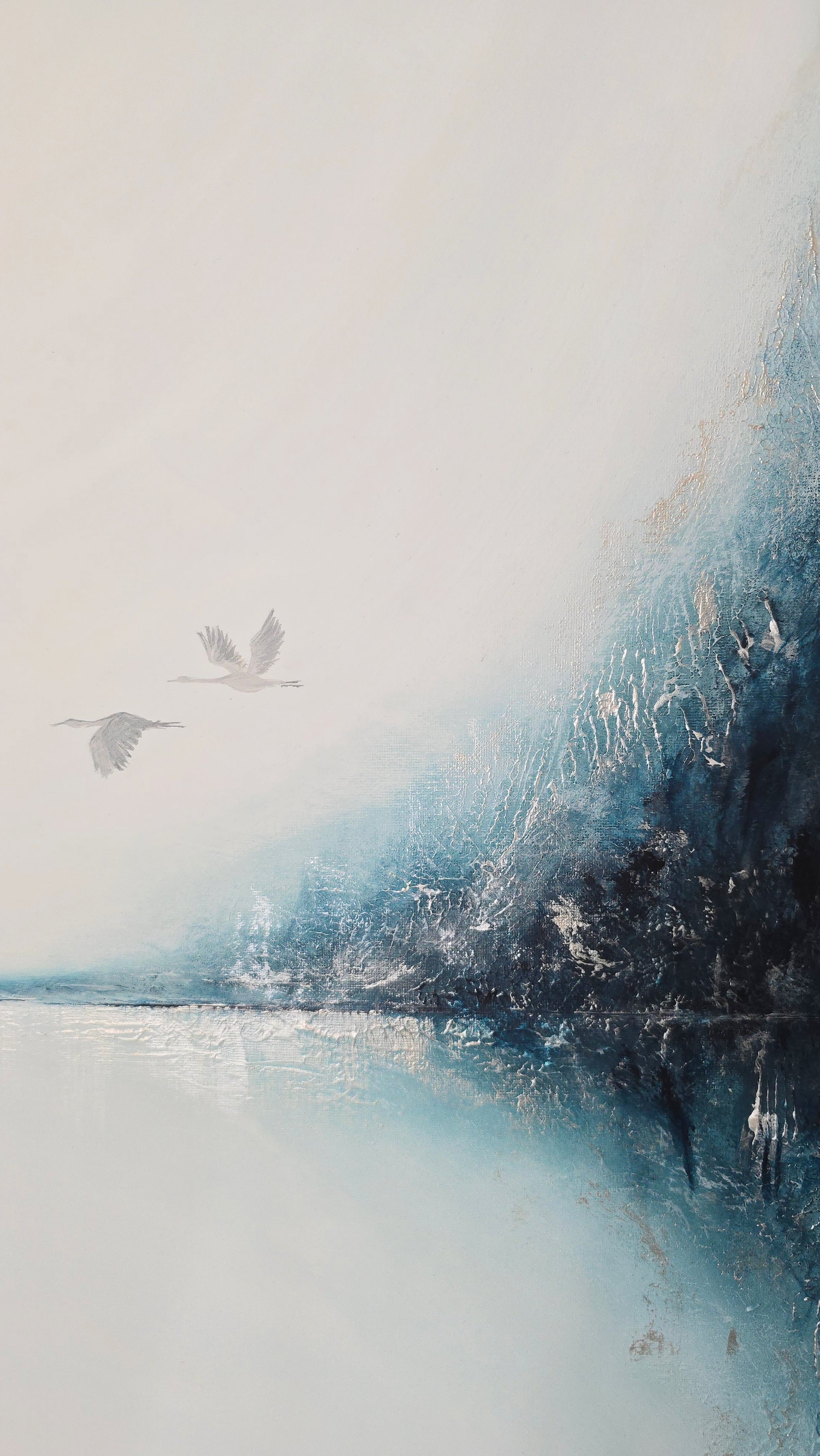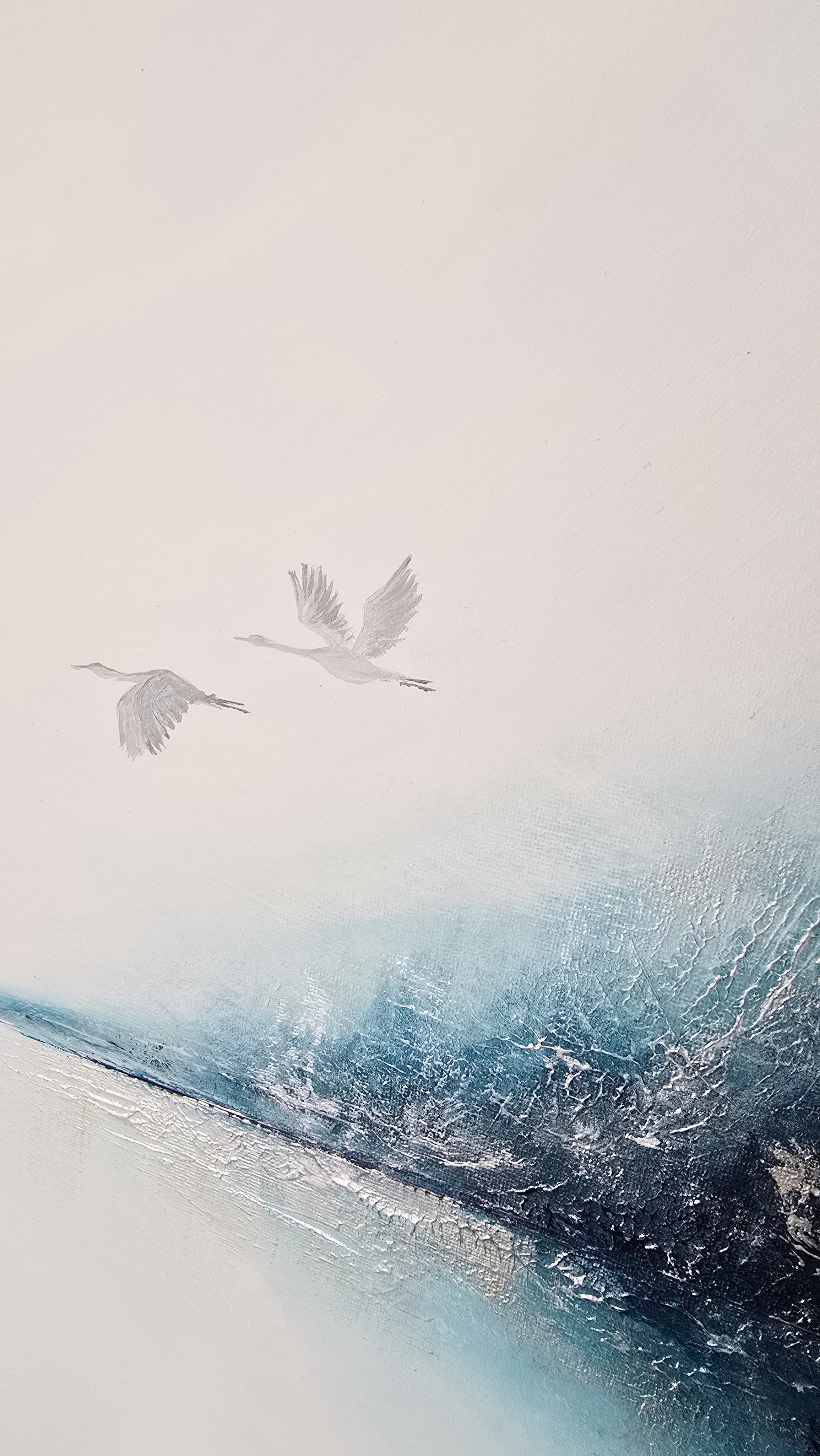 This piece of Fine Art captures that in-between place — the space where you exist, but not quite. The two birds in flight are not just moving. They’re crossing a threshold. Perhaps arriving, perhaps leaving. Just like you.