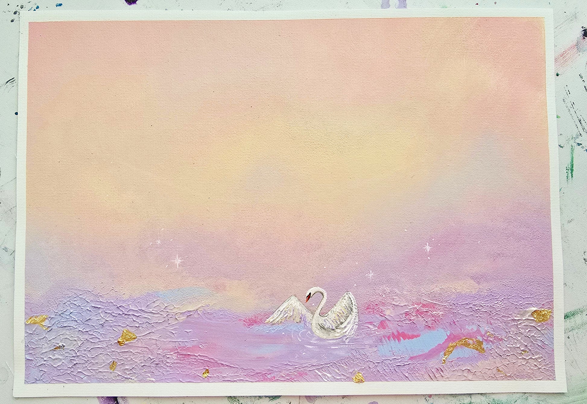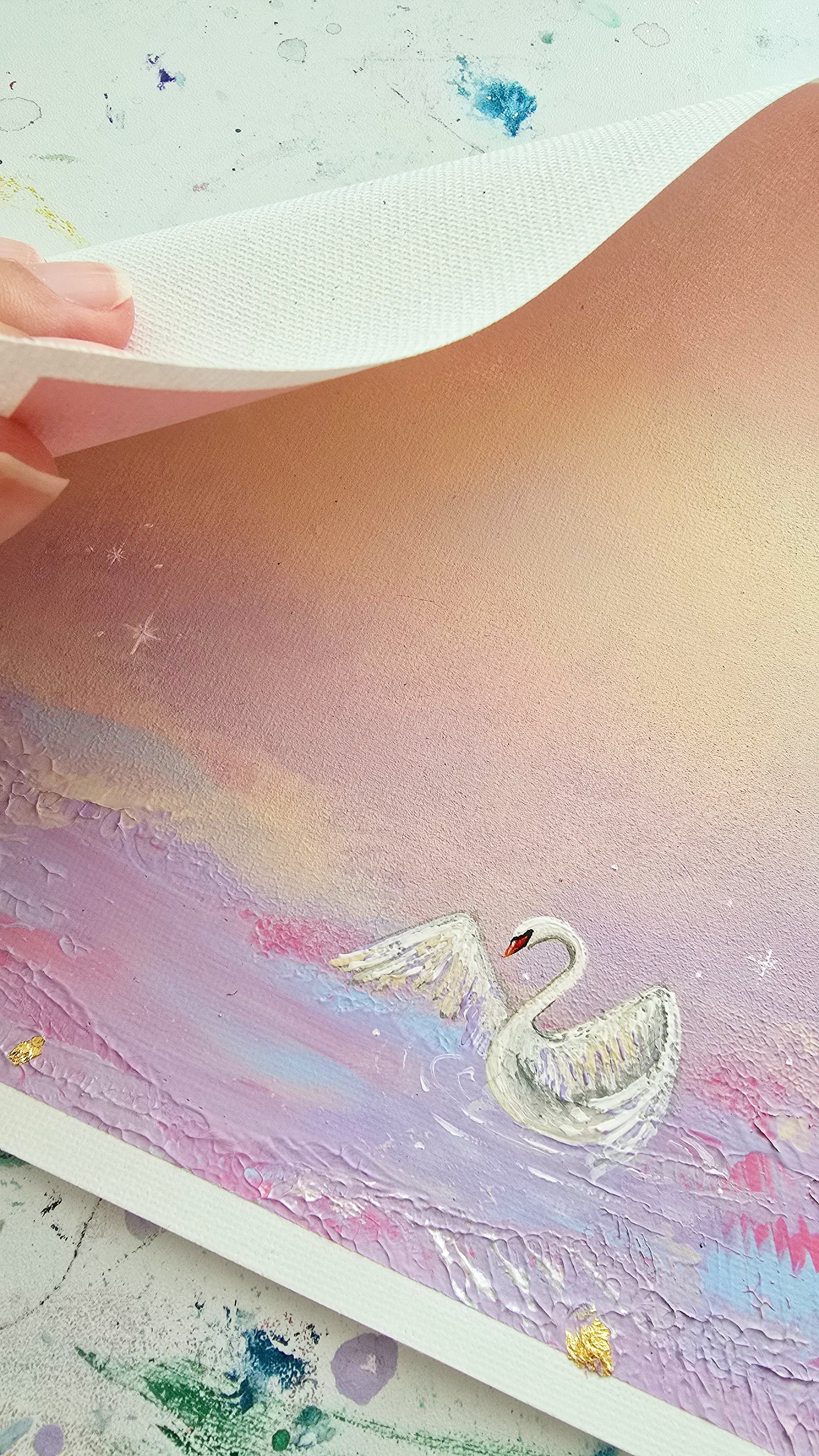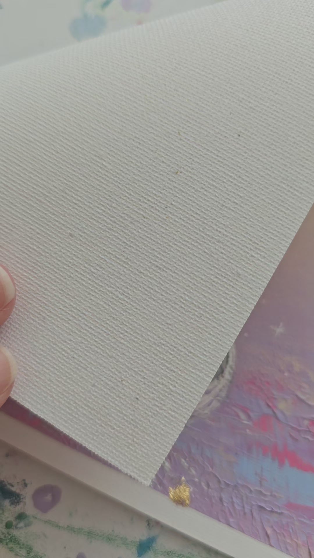 Painted in acrylic on high-quality canvas paper block, this work ensures colour fidelity and durability. The canvas blend of paper, cotton, and polyester offers a subtle texture that highlights each brushstroke.